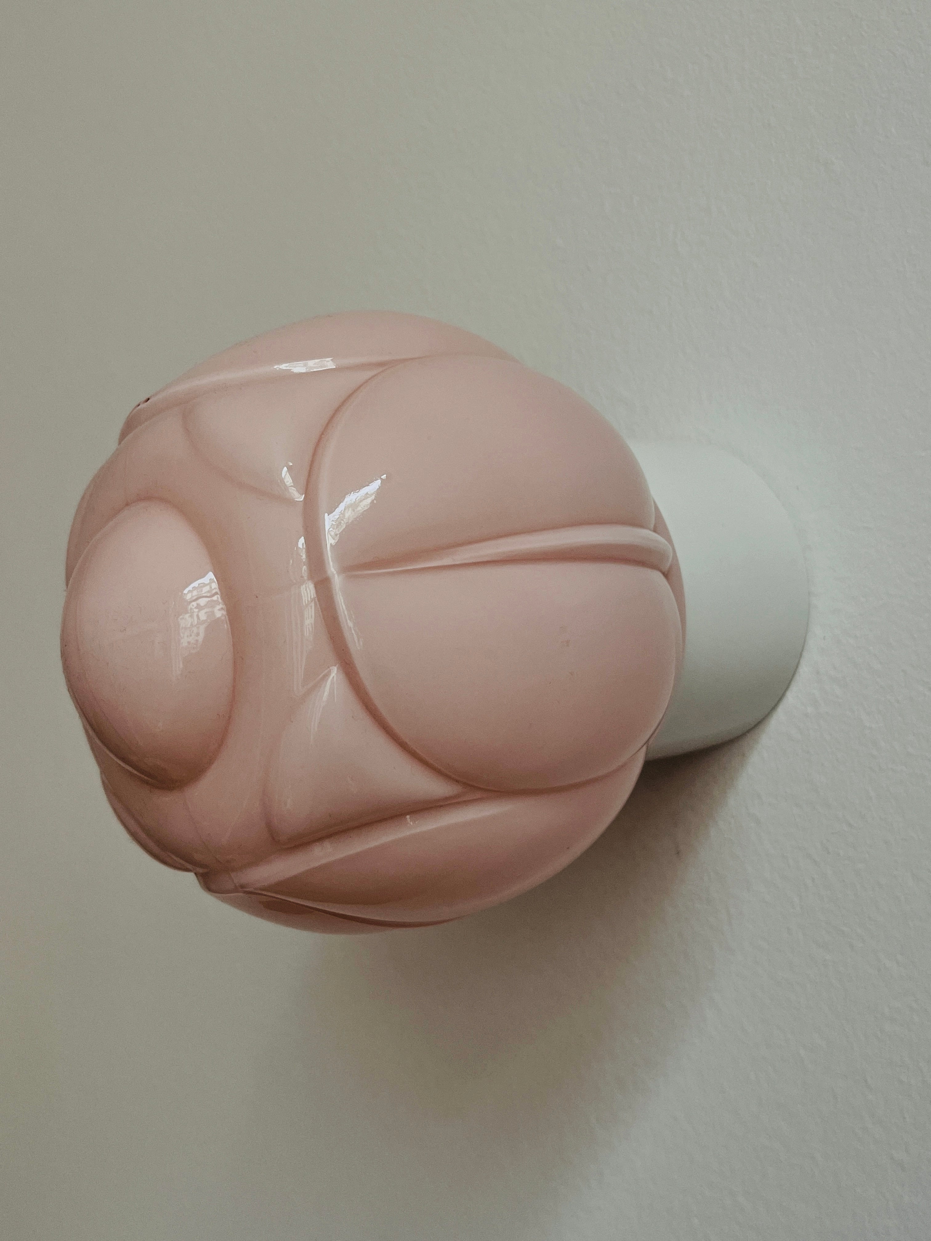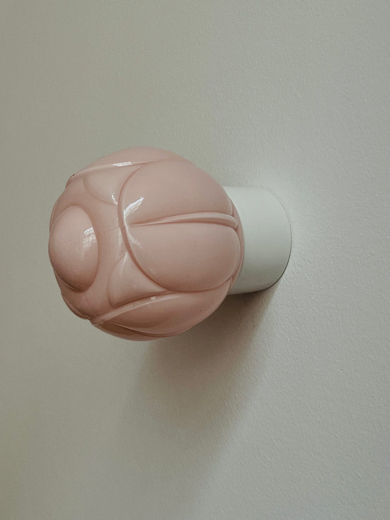 Jana est une applique murale vintage en opaline rose aux courbes douces et organiques, évoquant un bouton de fleur. Sa teinte délicate et sa base en porcelaine blanche en font une pièce à ne pas manquer pour apporter une touche résolument rétro à votre chambre ou à votre salle de bain.