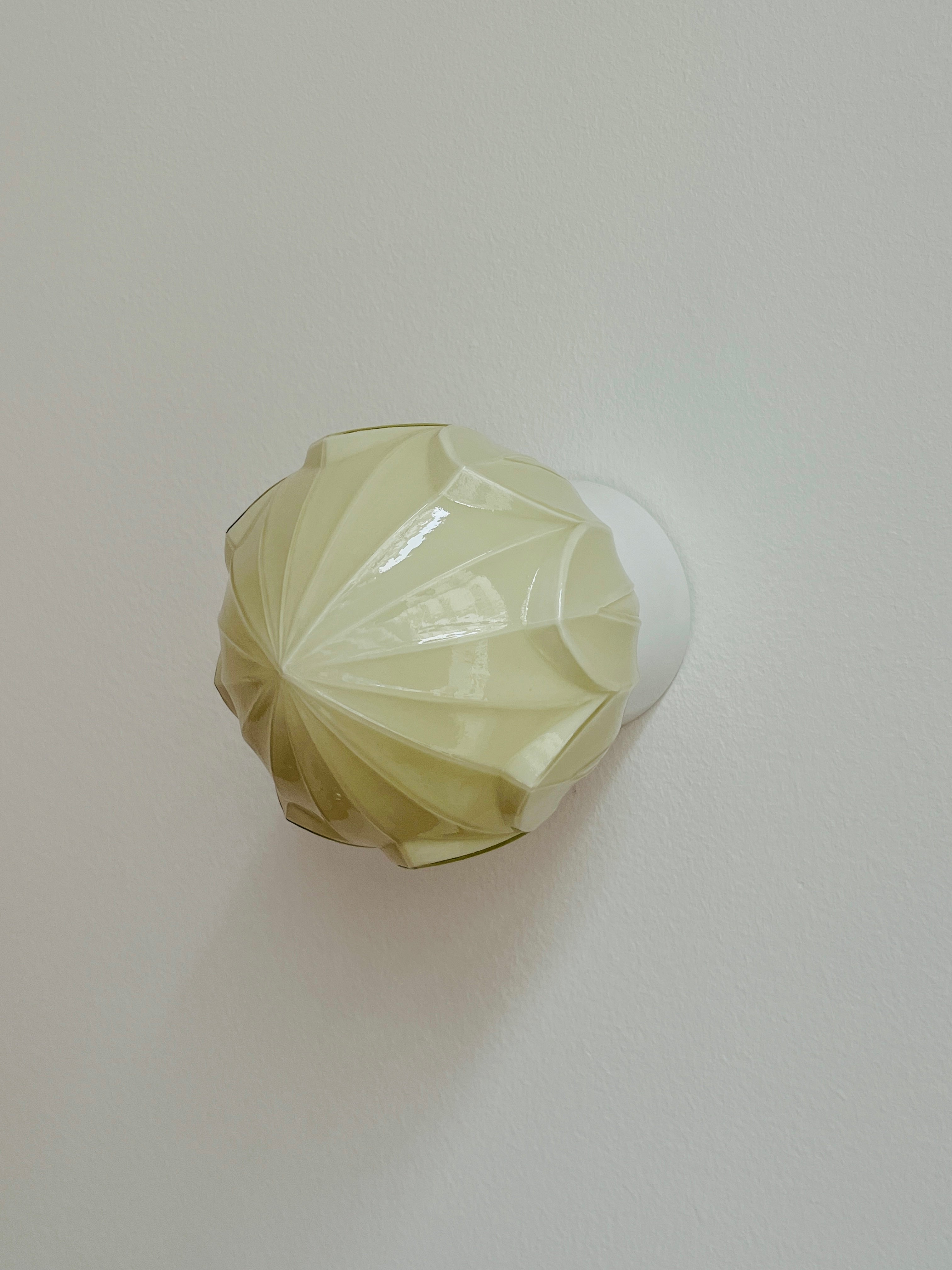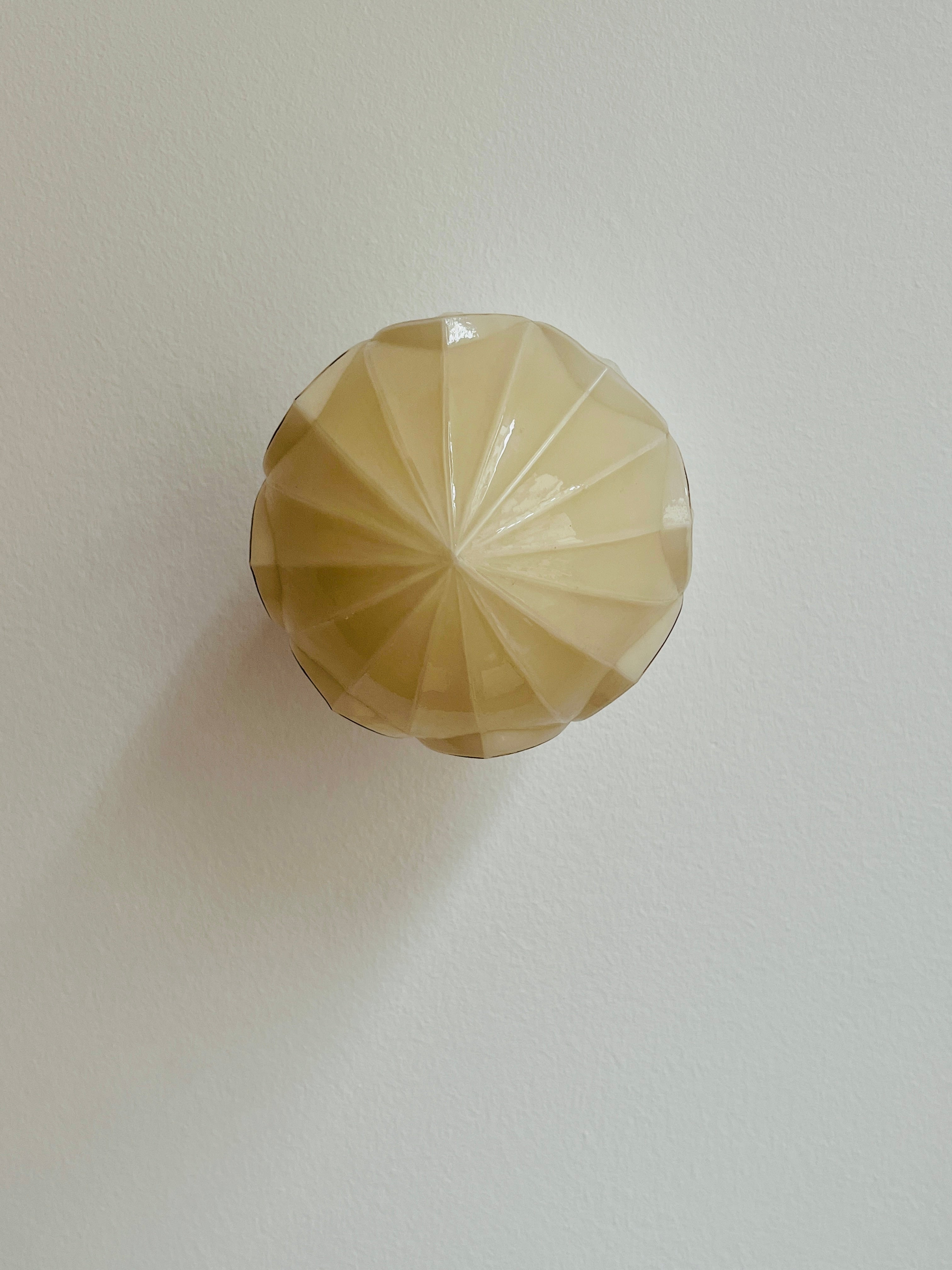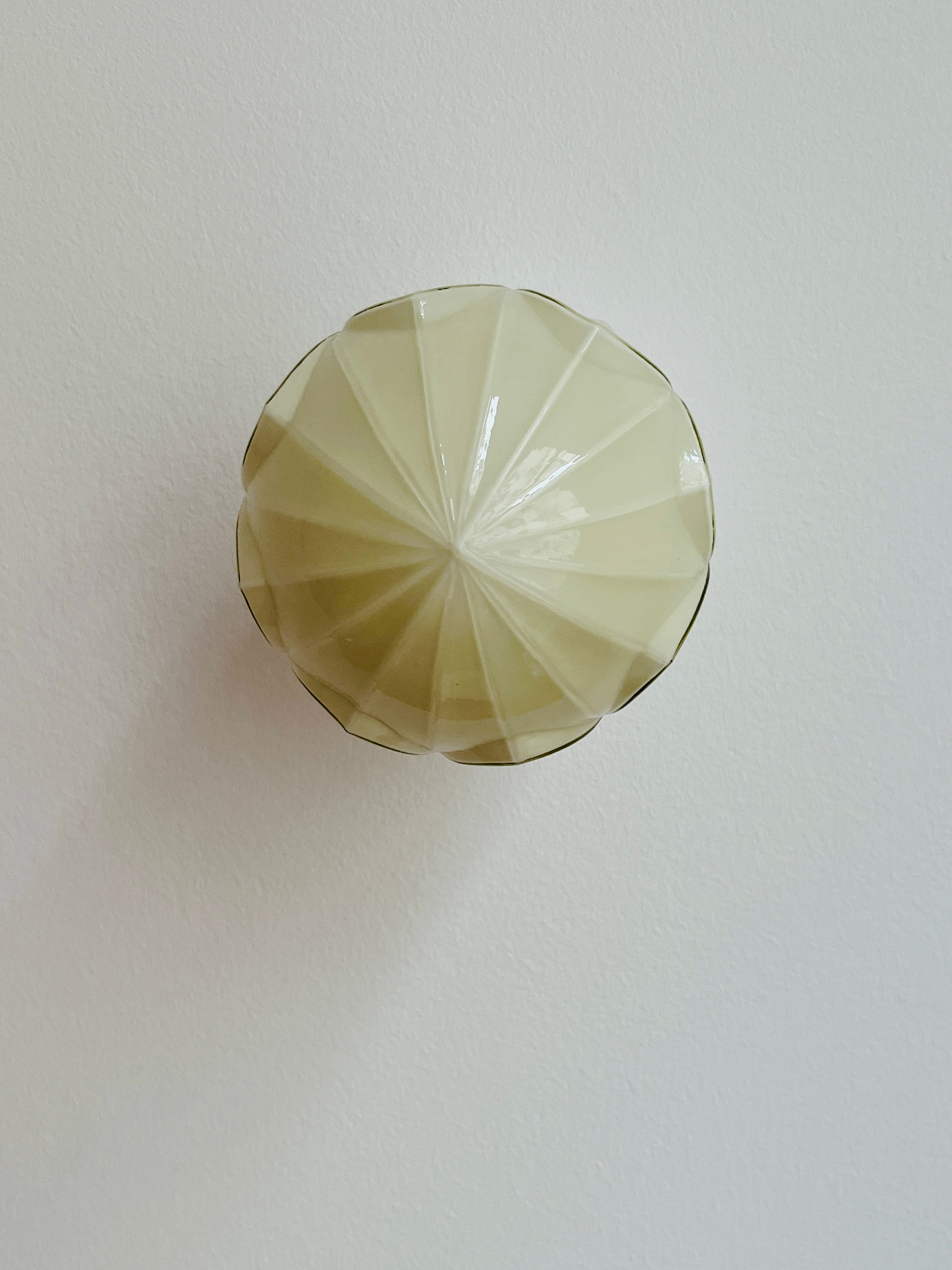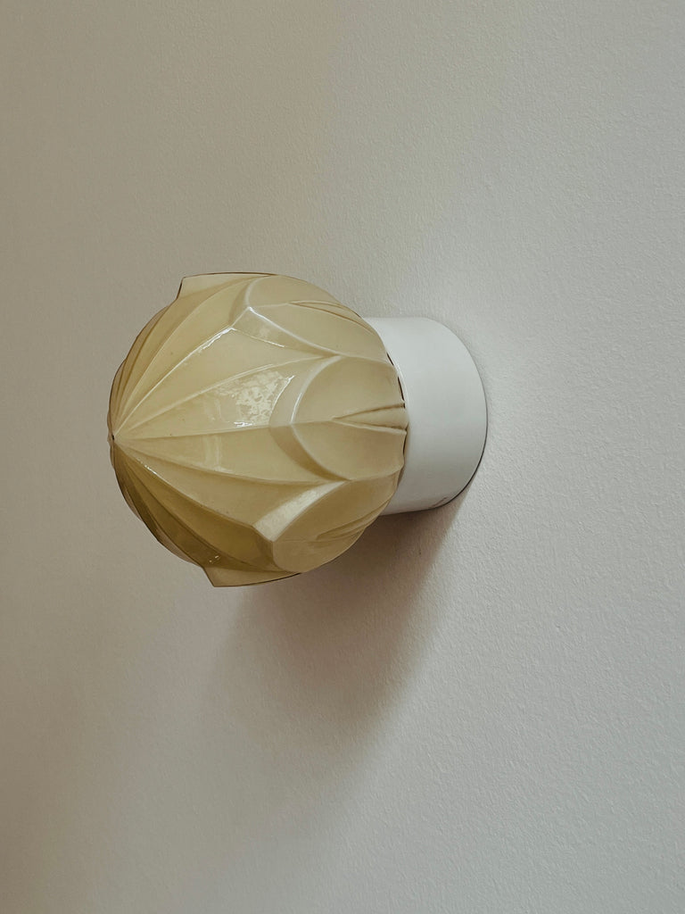 🍋 Petite merveille et méga rareté, cette applique vintage Lily est composée d'un globe vintage des Années 30 en opaline jaune pastel, chiné au Pays-Bas et remonté sur une base en porcelaine.