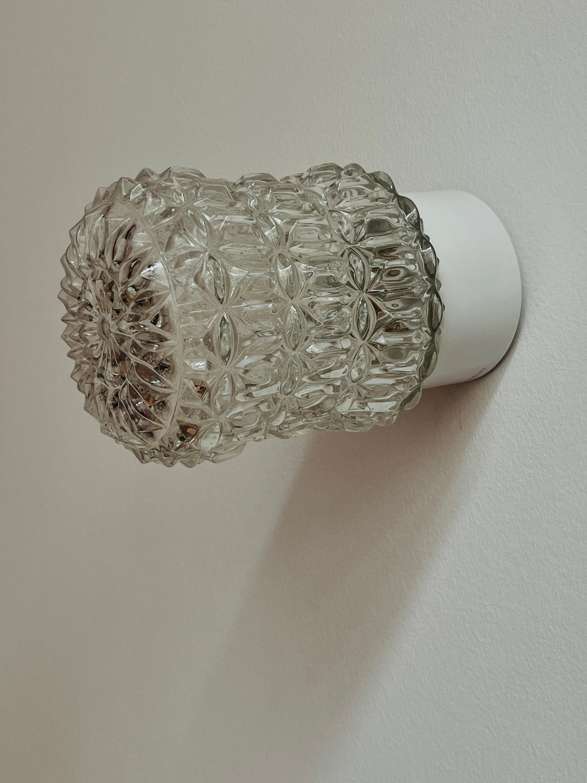 L'applique murale vintage Sasha, avec son globe en verre moulé aux motifs floraux et géométriques délicatement ciselés est montée sur une base en porcelaine blanche, compatible salle de bain. Elle diffuse une lumière élégante et brillante, idéale pour apporter la touche rétro parfaite à votre intérieur.